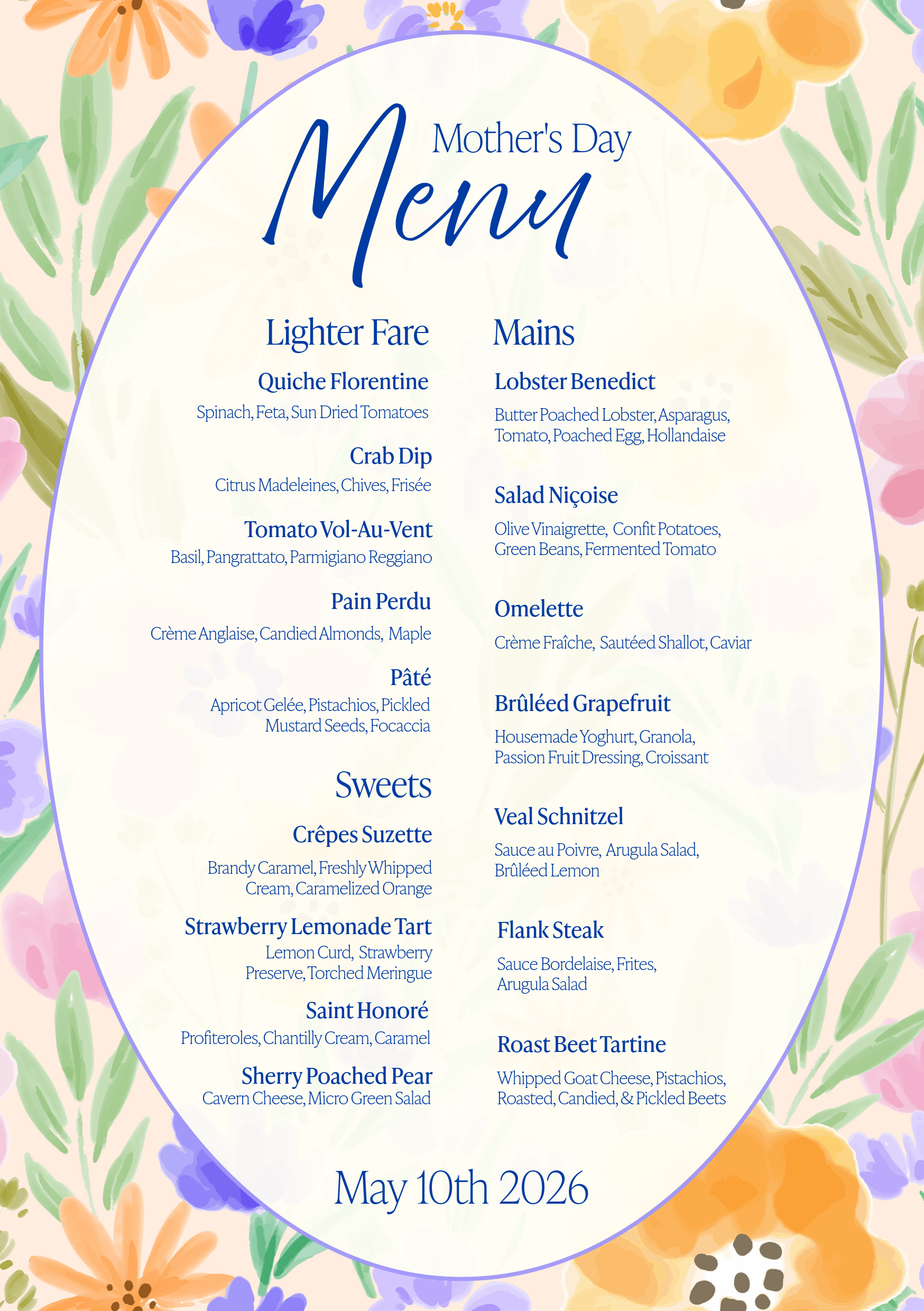 Whether you’re gathering for brunch, lunch, or an early dinner, treat Mom to a warm, welcoming atmosphere and a culinary experience she won’t forget.